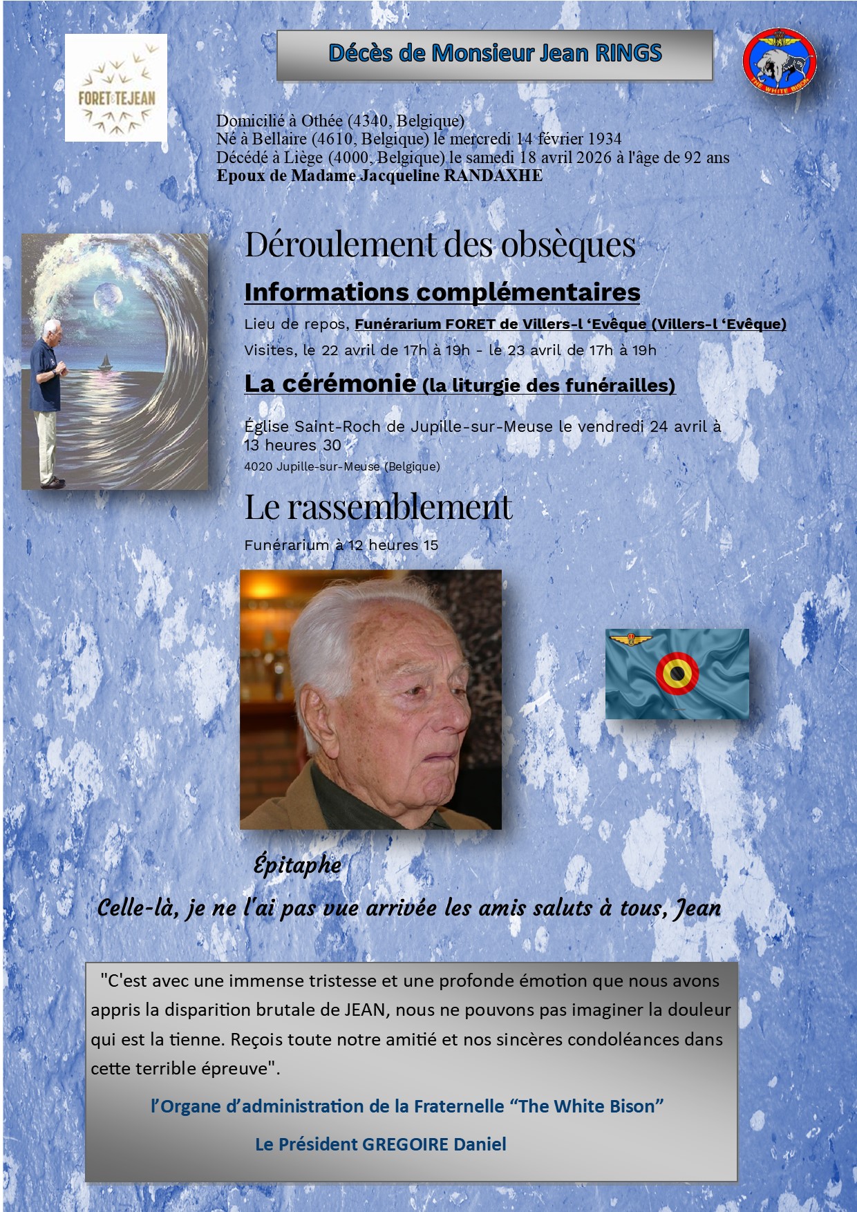 Décédé à Liège (4000, Belgique) le samedi 18 avril 2026 à l'âge de 92 ans